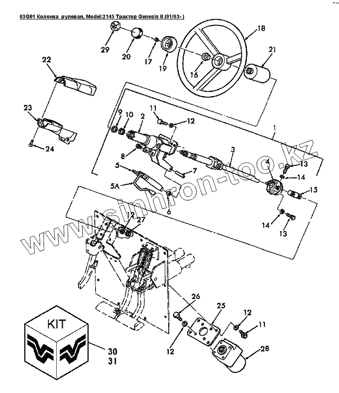 Каталог запасных частей к технике: Versatile серии GENESIS. 03G01 Колонка рулевая