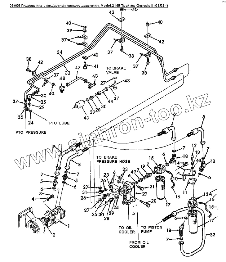 Каталог запасных частей к технике: Versatile серии GENESIS. 05A05 Гидравлика стандартная низкого давления