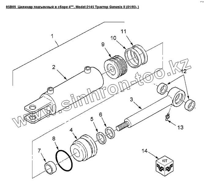 Каталог запасных частей к технике: Versatile серии GENESIS. 05B09 Цилиндр подъемный в сборе 4