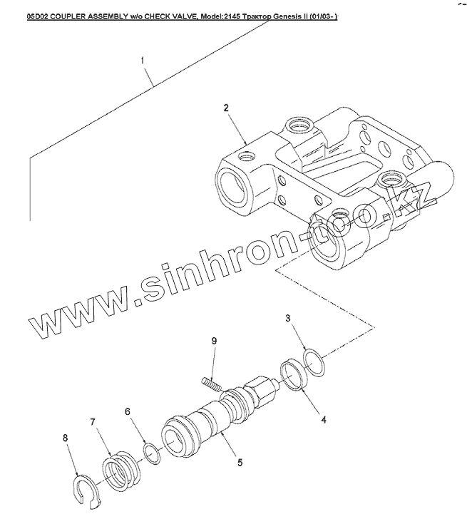 Каталог запасных частей к технике: Versatile серии GENESIS. 05D02 COUPLER ASSEMBLY w/o CHECK VALVE