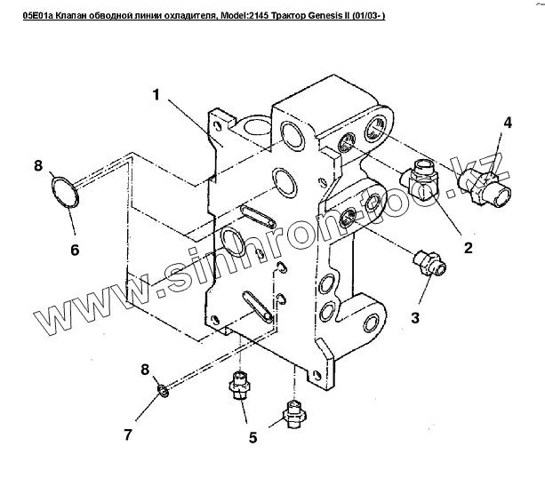 Каталог запасных частей к технике: Versatile серии GENESIS. 05E01a Клапан обводной линии охладителя