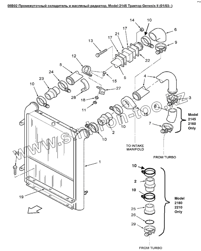Каталог запасных частей к технике: Versatile серии GENESIS. 08B02 Промежуточный охладитель и масляный радиатор