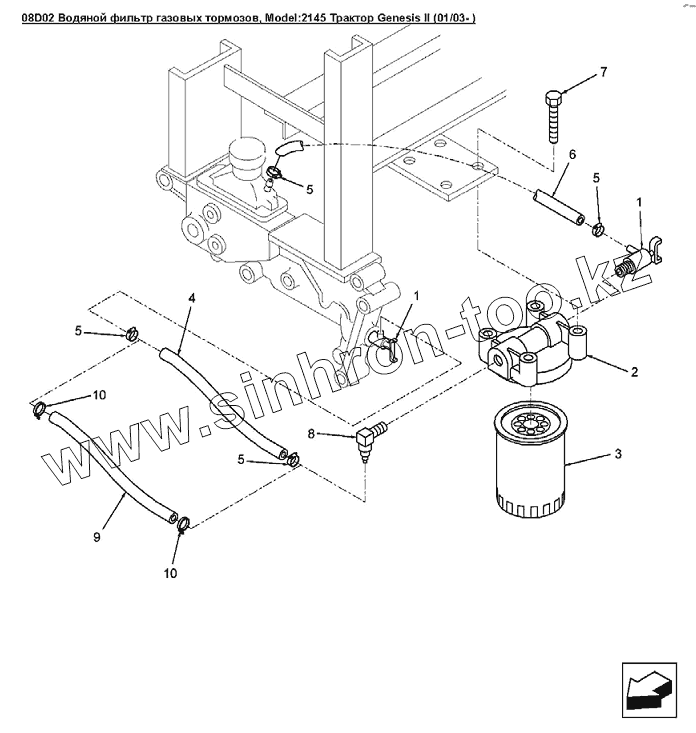 Каталог запасных частей к технике: Versatile серии GENESIS. 08D02 Водяной фильтр газовых тормозов