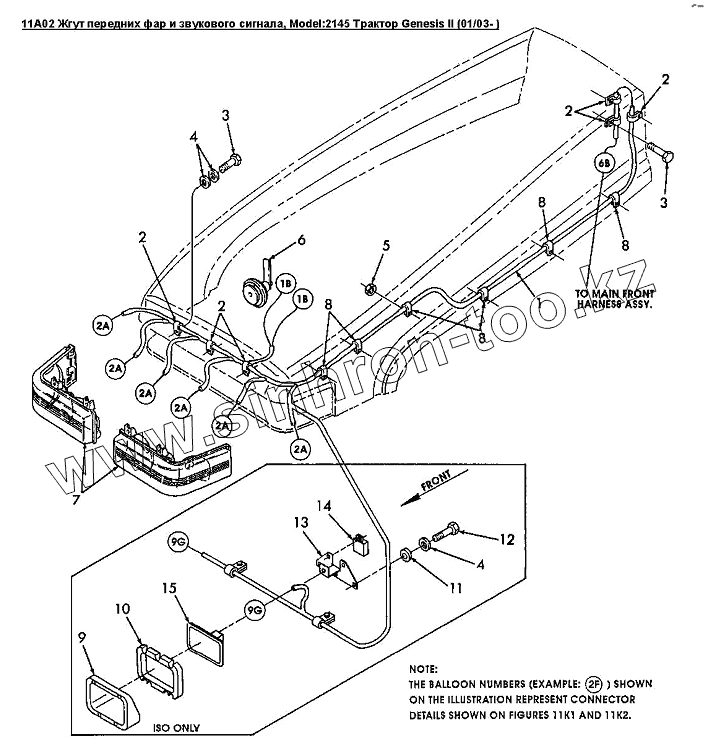 Каталог запасных частей к технике: Versatile серии GENESIS. 11A02 Жгут передних фар и звукового сигнала