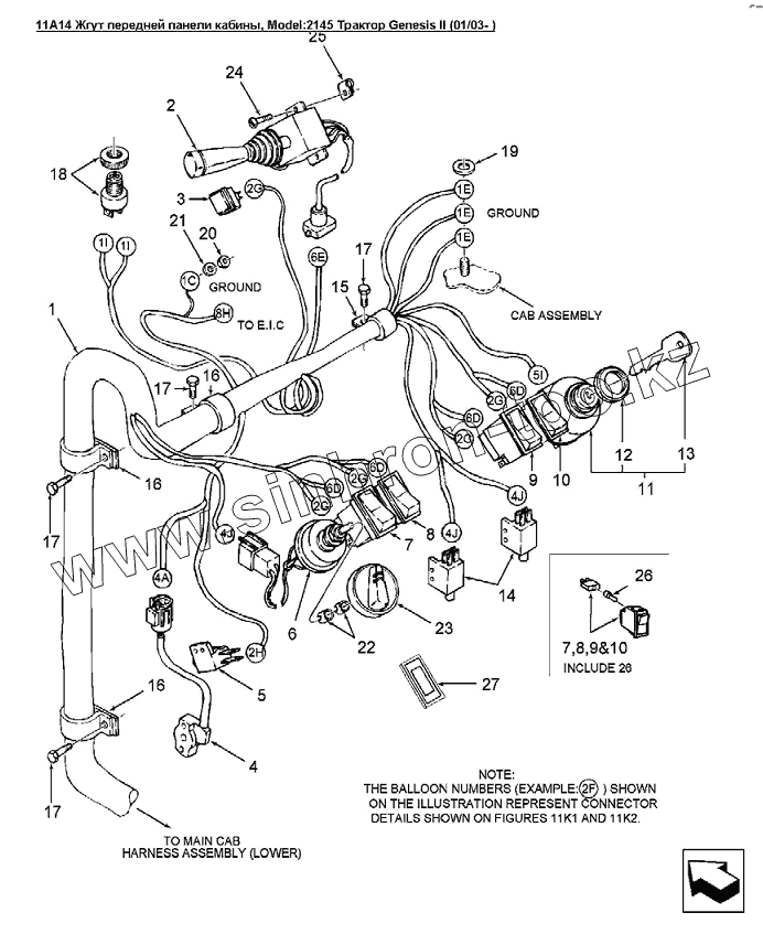 Каталог запасных частей к технике: Versatile серии GENESIS. 11A14 Жгут передней панели кабины