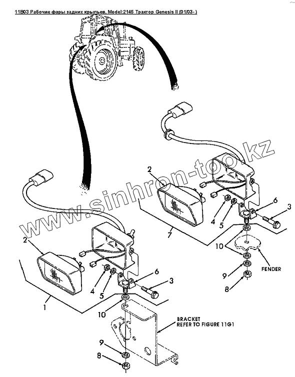 Каталог запасных частей к технике: Versatile серии GENESIS. 11B03 Рабочие фары задних крыльев
