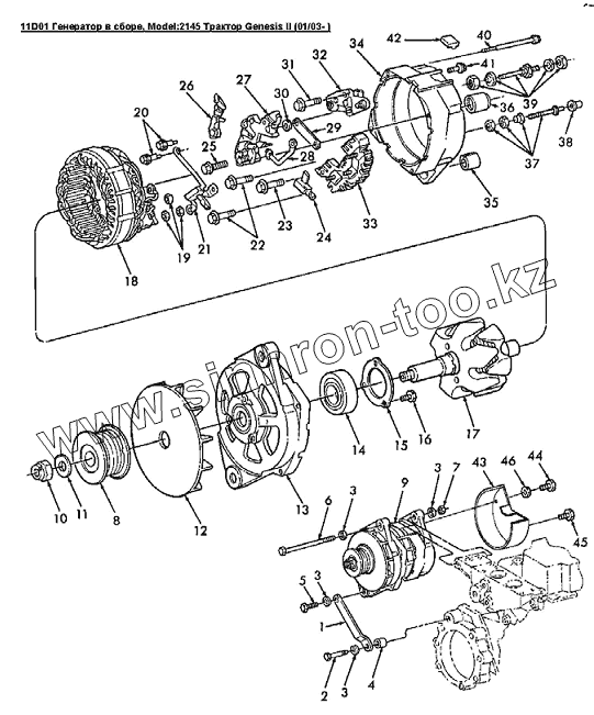Каталог запасных частей к технике: Versatile серии GENESIS. 11D01 Генератор в сборе