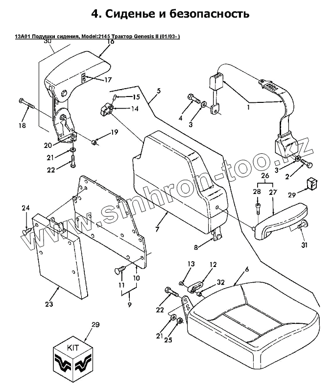Каталог запасных частей к технике: Versatile серии GENESIS. 13A01 Подушки сидения