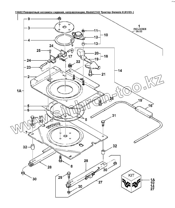 Каталог запасных частей к технике: Versatile серии GENESIS. 13A02 Поворотный механизм сидения, направляющие