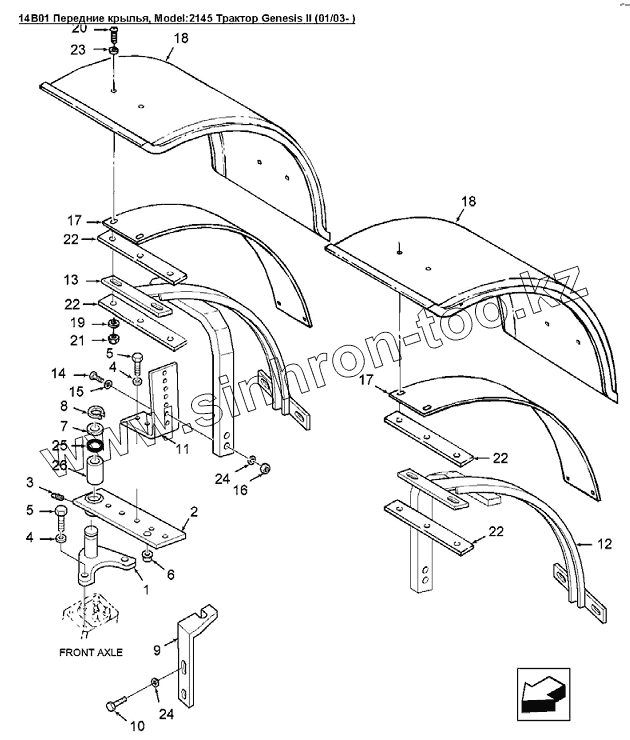 Каталог запасных частей к технике: Versatile серии GENESIS. 14B01 Передние крылья