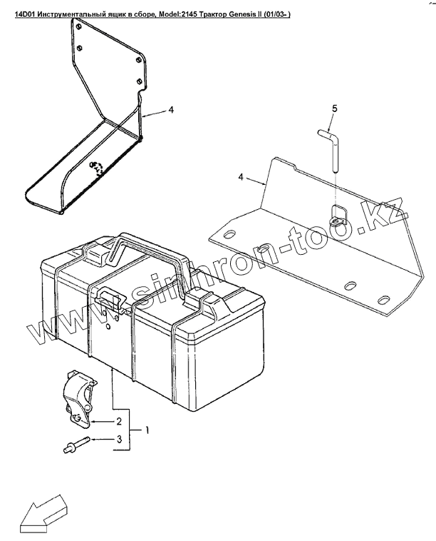 Каталог запасных частей к технике: Versatile серии GENESIS. 14D01 Инструментальный ящик в сборе