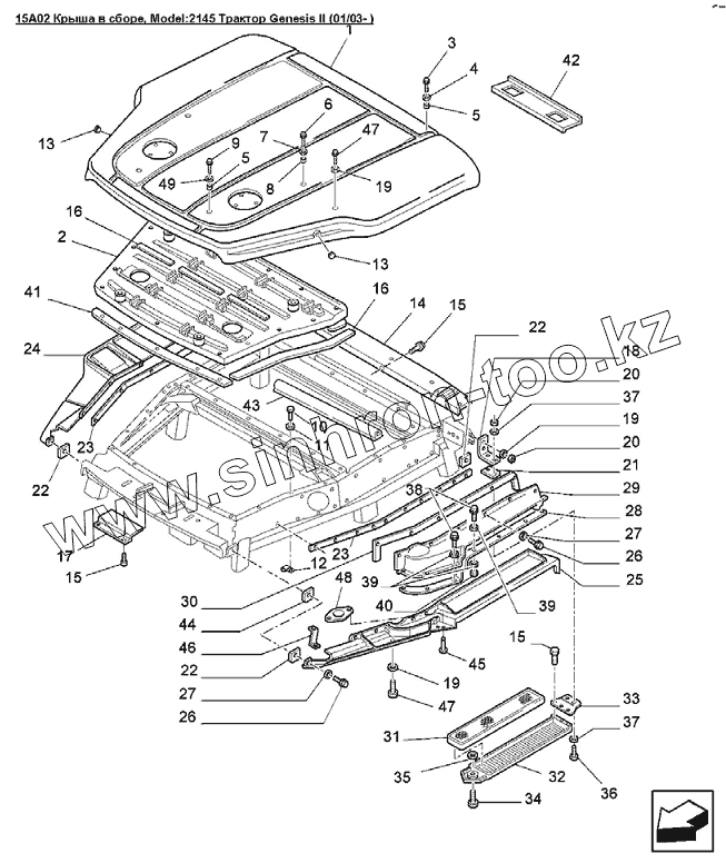 Каталог запасных частей к технике: Versatile серии GENESIS. 15A02 Крыша в сборе