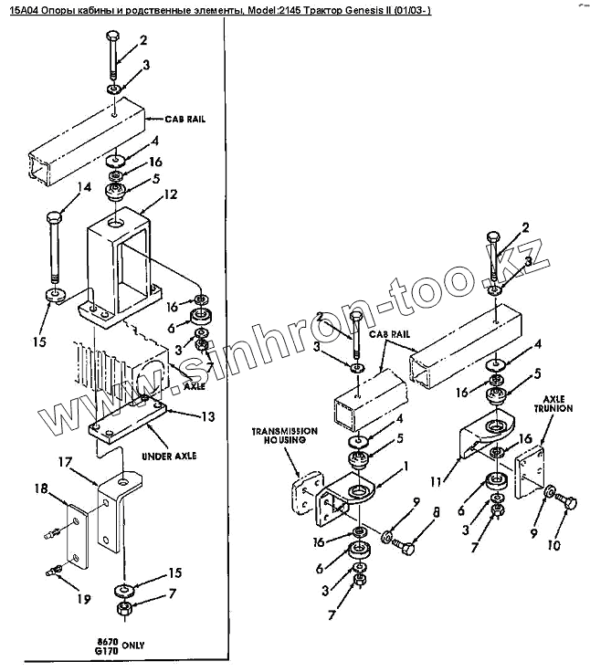Каталог запасных частей к технике: Versatile серии GENESIS. 15A04 Опоры кабины и родственные элементы