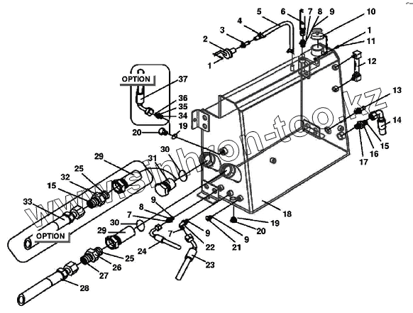 Каталог запасных частей к технике: Versatile серии HHT. 6HTC01 Схема подключения гидробака