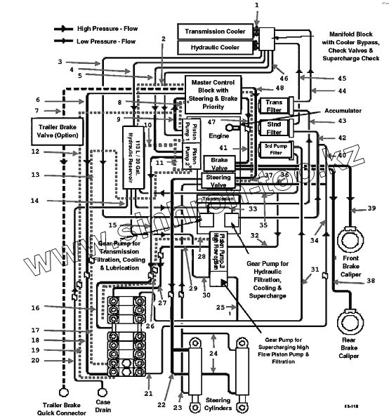 Каталог запасных частей к технике: Versatile серии HHT. 6HYD01 Схема перемещения жидкости в гидравлической системе