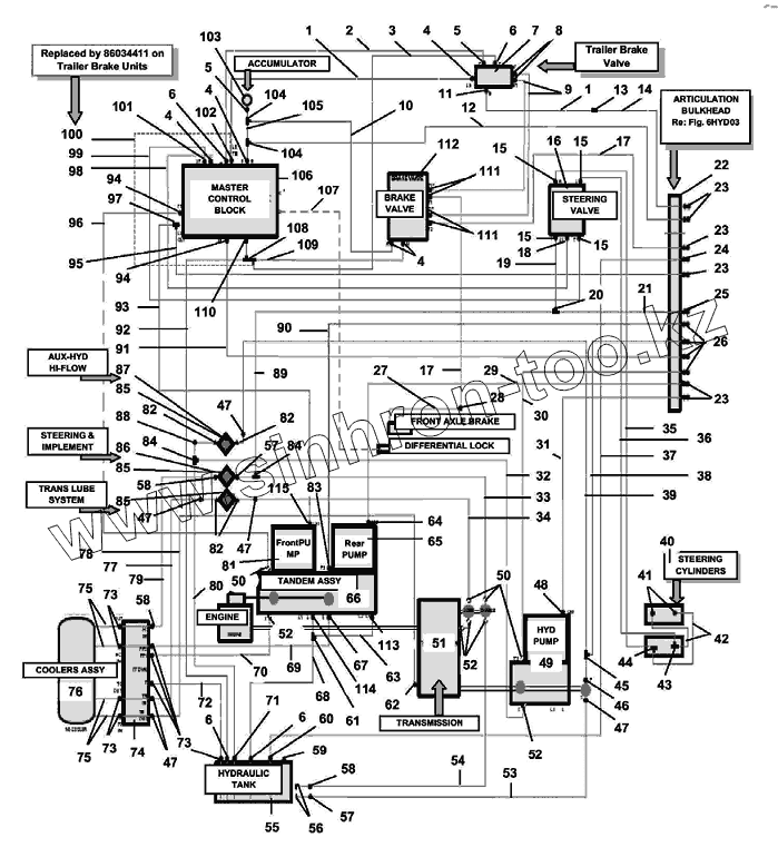Каталог запасных частей к технике: Versatile серии HHT. 6HYD01a Гидравлическая система передней части рамы