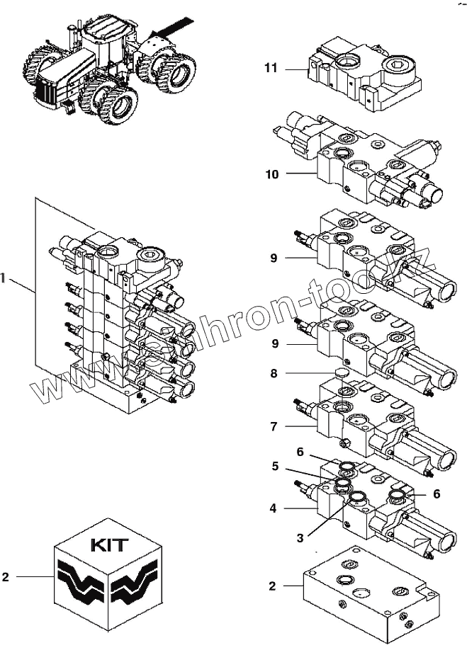 Каталог запасных частей к технике: Versatile серии HHT. 6VLV02 Клапан гидравлический, 4 секция W/Hpl