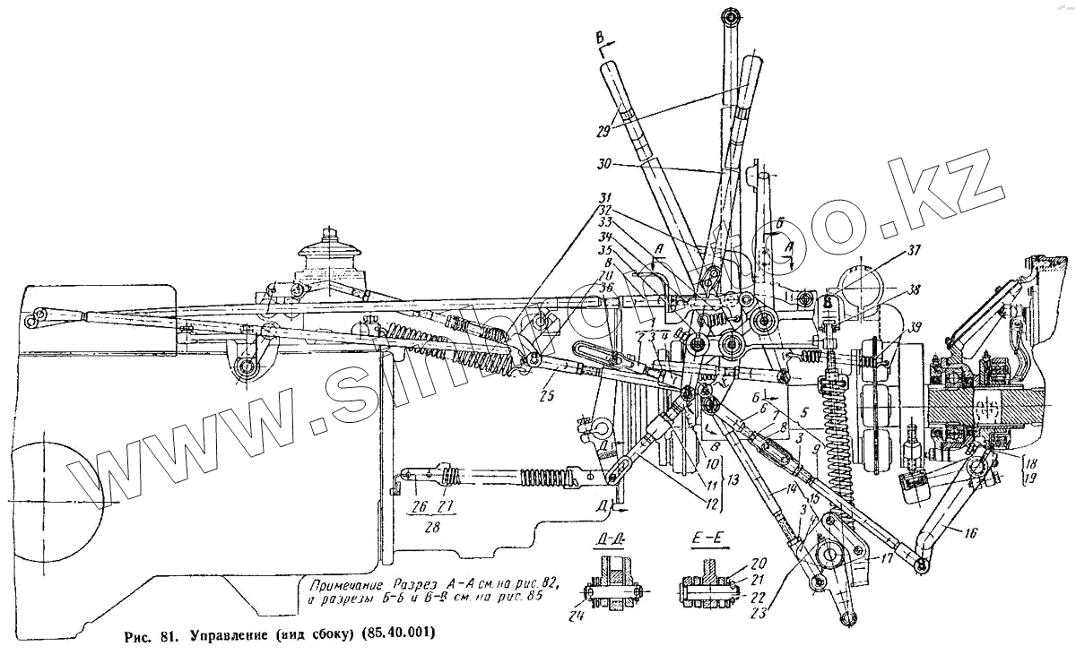 Каталог запасных частей к технике: ВгТЗ ДТ-75М. Управление (вид сбоку) (85.40.001)