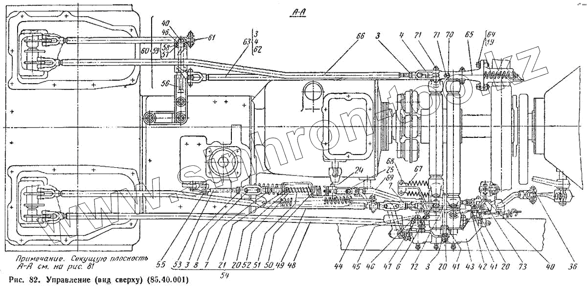 Каталог запасных частей к технике: ВгТЗ ДТ-75М. Управление (вид сверху) (85.40.001)
