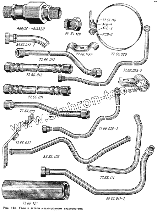 Каталог запасных частей к технике: ВгТЗ ДТ-75М. Узлы и детали маслопроводов гидросистемы