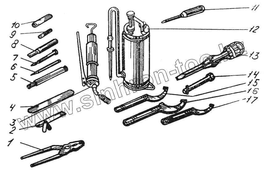 Каталог запасных частей к технике: ВгТЗ ДТ-75МВ. Комплект инструмента и принадлежности