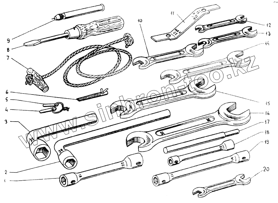 Каталог запасных частей к технике: ВгТЗ ДТ-75МВ. Комплект инструмента и приспособлений