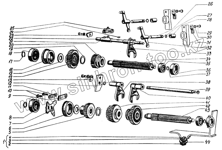 Каталог запасных частей к технике: ВгТЗ ДТ-75МВ. Коробка передач. Вал заднего хода и дополнительный