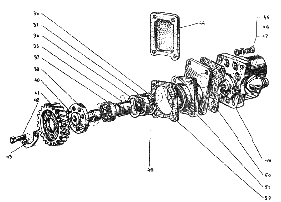 | 30 | СМД7-2602-1 | Вал привода гидравлического насоса | |