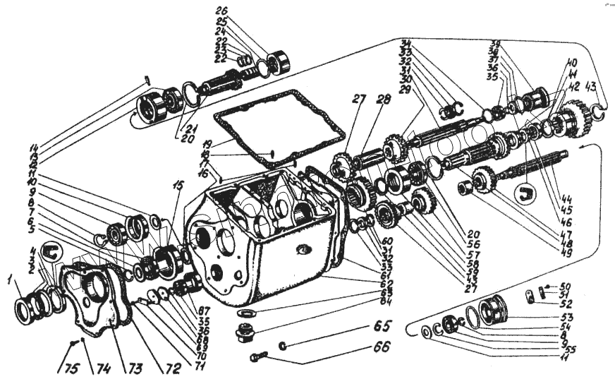 Каталог запасных частей к технике: ВгТЗ ДТ-75МВ. Реверс-редуктор. Валы и шестерни