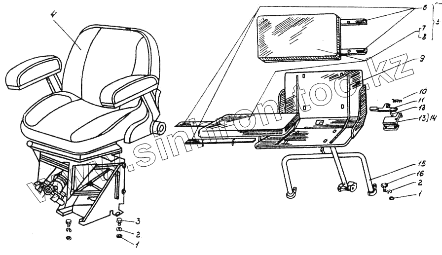 Каталог запасных частей к технике: ВгТЗ ДТ-75МВ. Установка сиденья