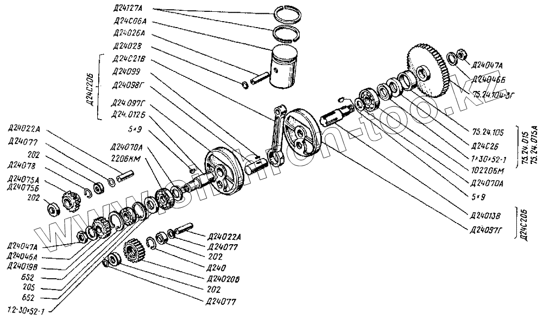 Каталог запасных частей к технике: ВгТЗ ДТ-75Н. Кривошипно-шатунный механизм
