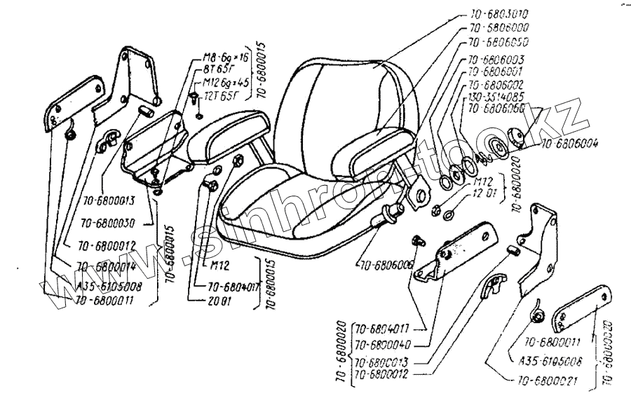 Каталог запасных частей к технике: ВгТЗ ДТ-75Н. Сиденье. Сборка сиденья