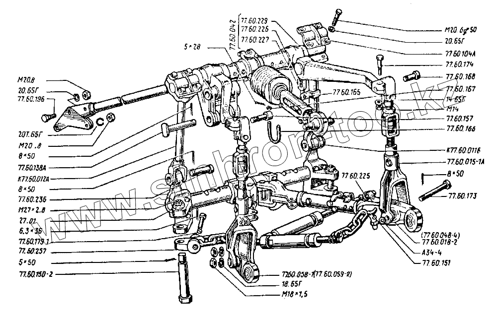 Каталог запасных частей к технике: ВгТЗ ДТ-75Н. Устройство навесное заднее. Стойки и тяги