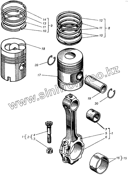 Каталог запасных частей к технике: ВгТЗ ДТ-75В, ДТ-75БВ, ДТ75Н. Поршень с шатуном