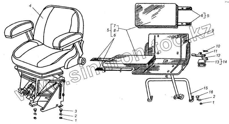 Каталог запасных частей к технике: ВгТЗ ДТ-75В, ДТ-75БВ, ДТ75Н. Сиденье