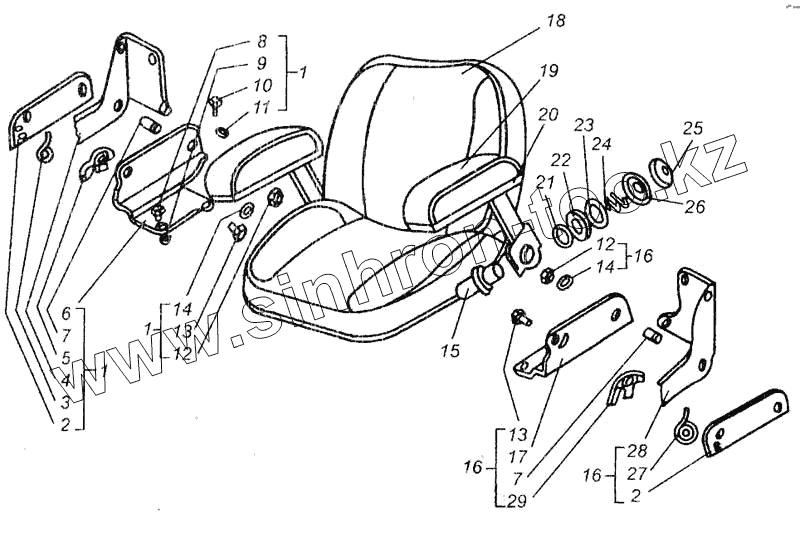 Каталог запасных частей к технике: ВгТЗ ДТ-75В, ДТ-75БВ, ДТ75Н. Сиденье. Сборка сиденья