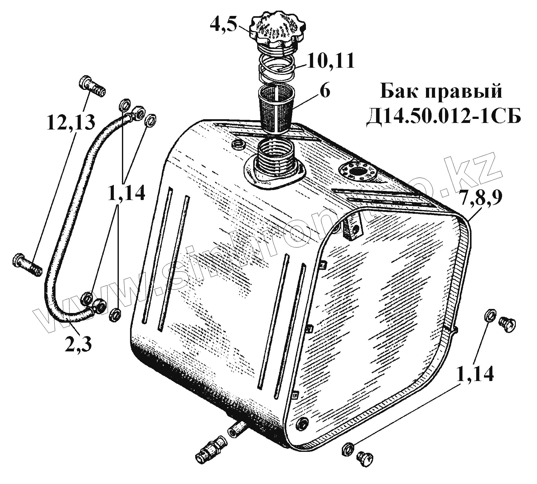 Каталог запасных частей к технике: ВгТЗ ВТ-100Д. Бак правый Д14.50.012-1СБ