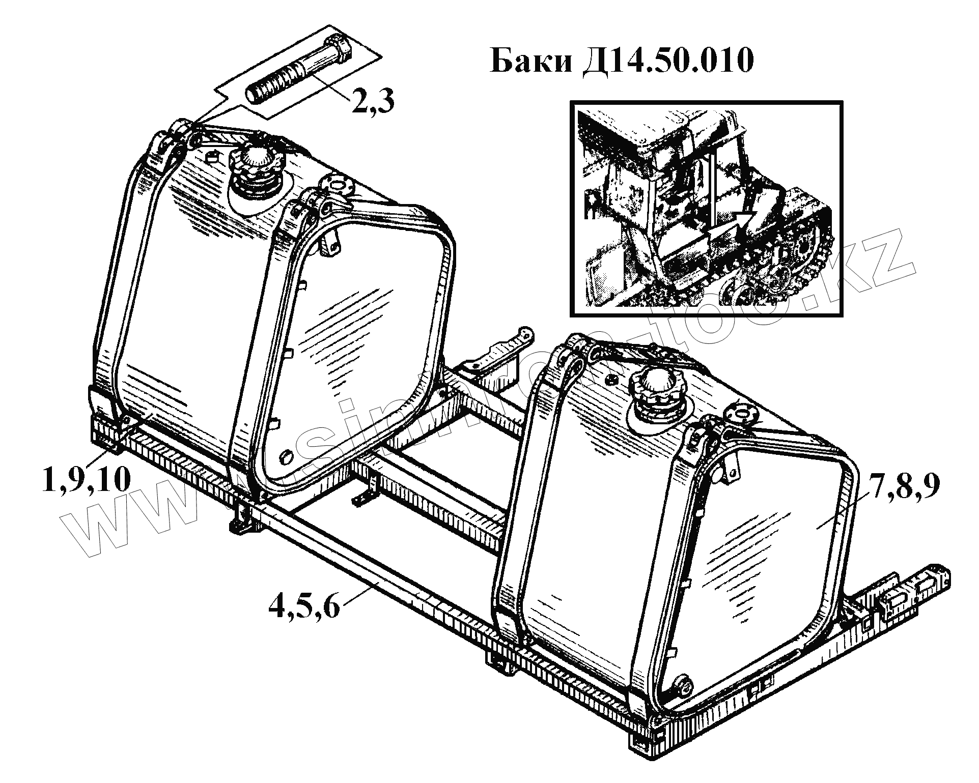 Каталог запасных частей к технике: ВгТЗ ВТ-100Д. Баки Д14.50.010 (1)