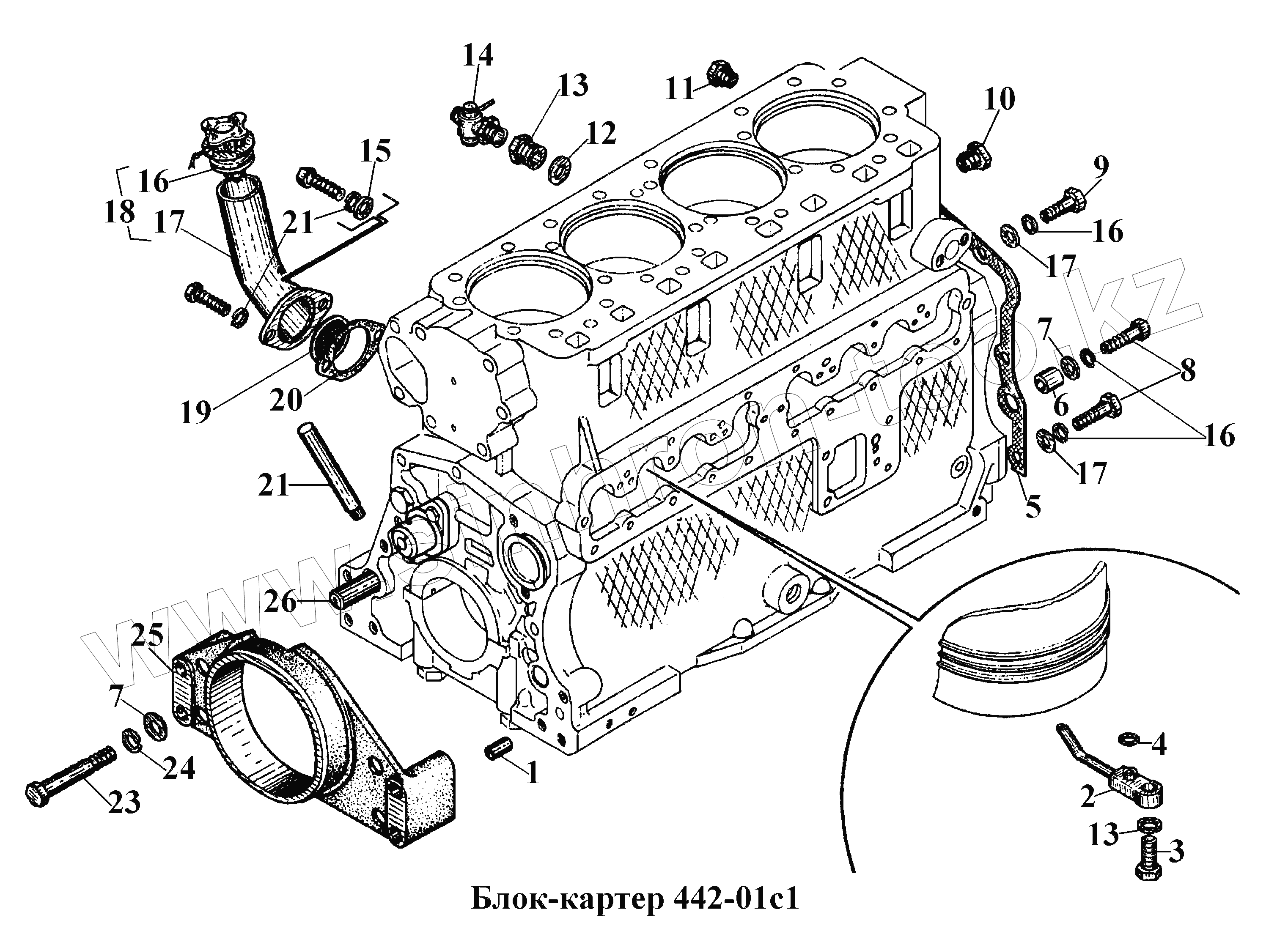 Каталог запасных частей к технике: ВгТЗ ВТ-100Д. Блок картер 442-01с1 (2)
