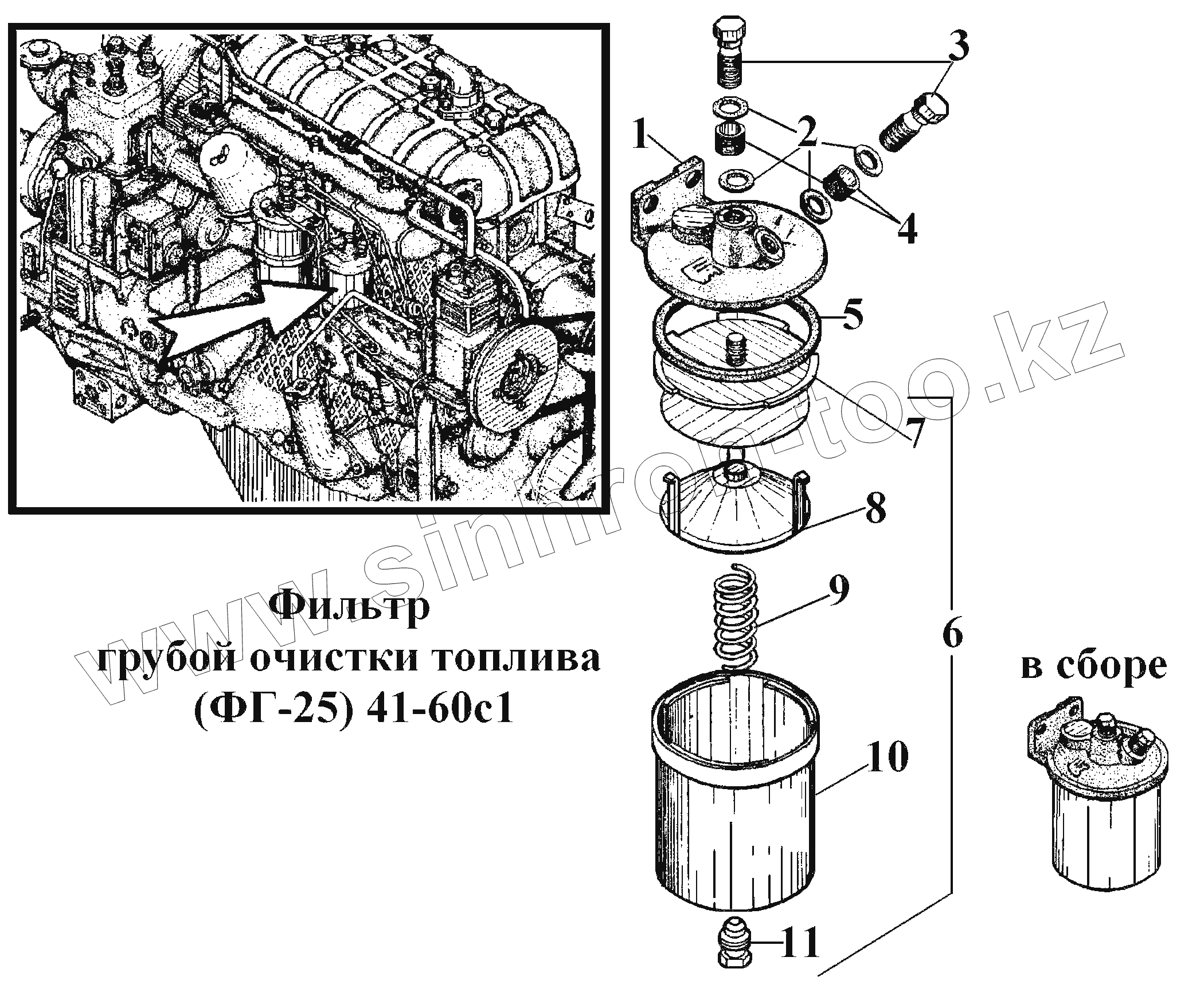 Каталог запасных частей к технике: ВгТЗ ВТ-100Д. Фильтр грубой очистки топлива (ФГ-25) 41-60с1