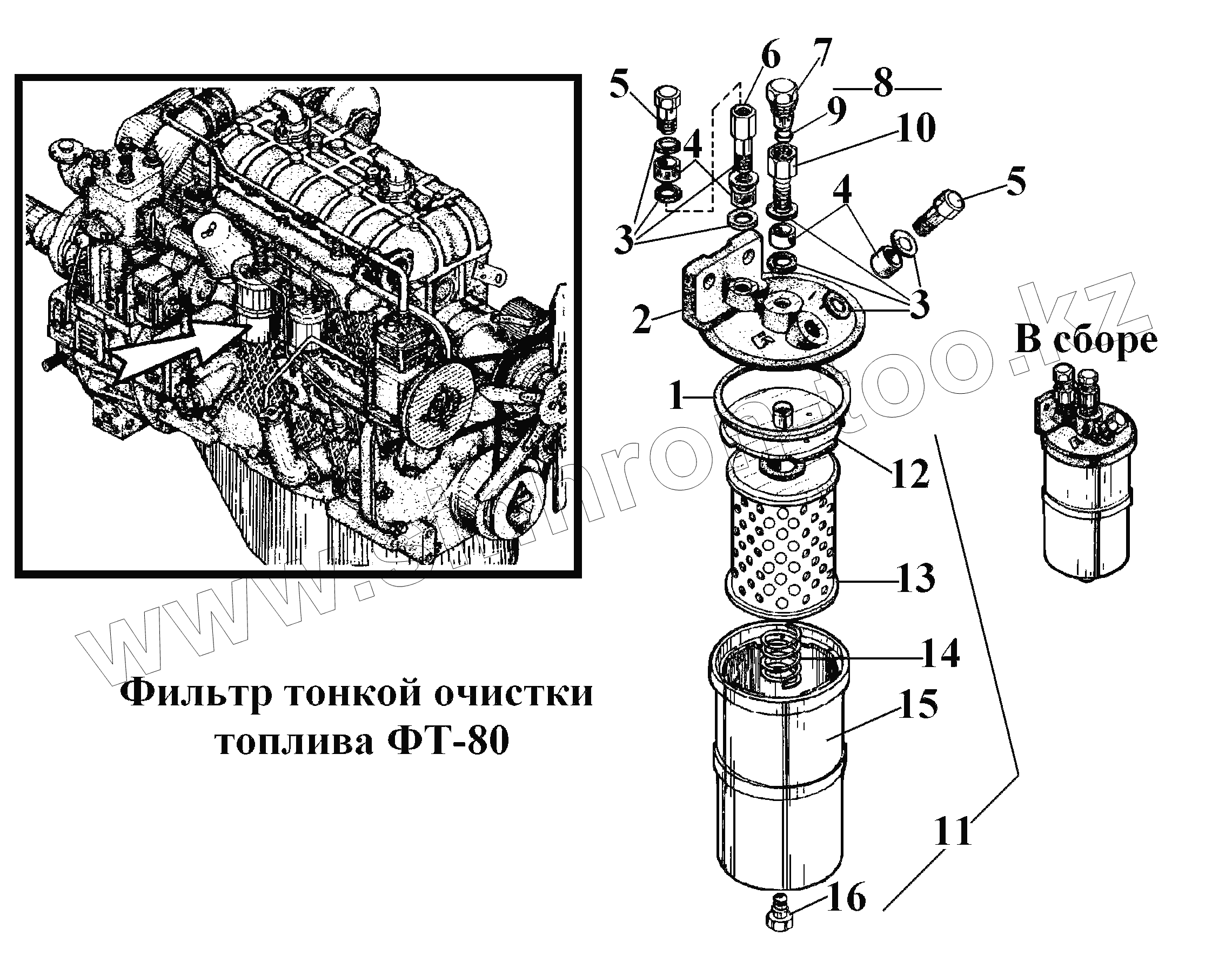 Каталог запасных частей к технике: ВгТЗ ВТ-100Д. Фильтр тонкой очистки топлива ФТ-80
