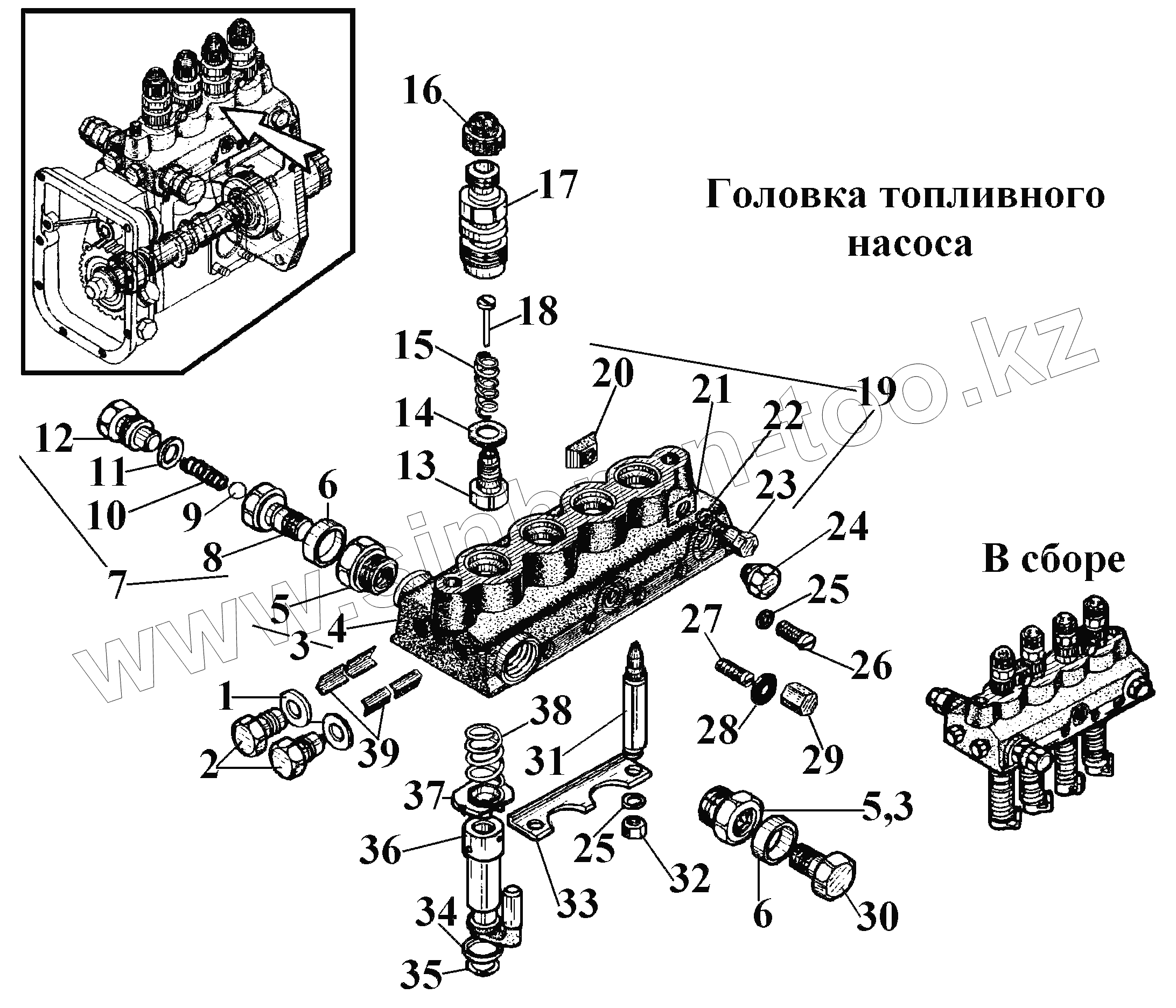 Каталог запасных частей к технике: ВгТЗ ВТ-100Д. Головка топливного насоса