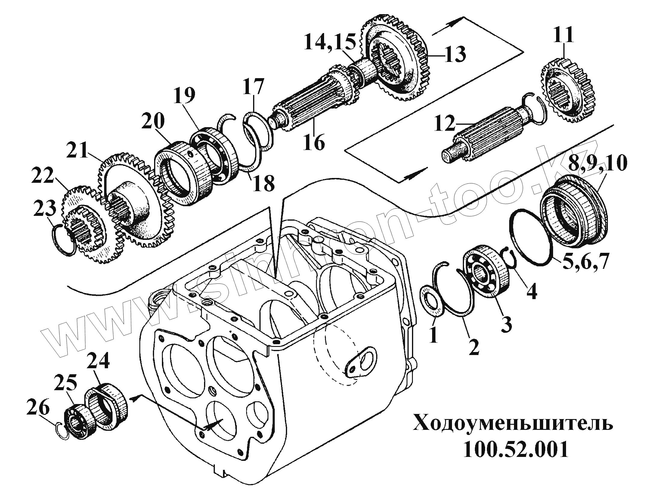 Каталог запасных частей к технике: ВгТЗ ВТ-100Д. Ходоуменьшитель 100.52.001 (2)
