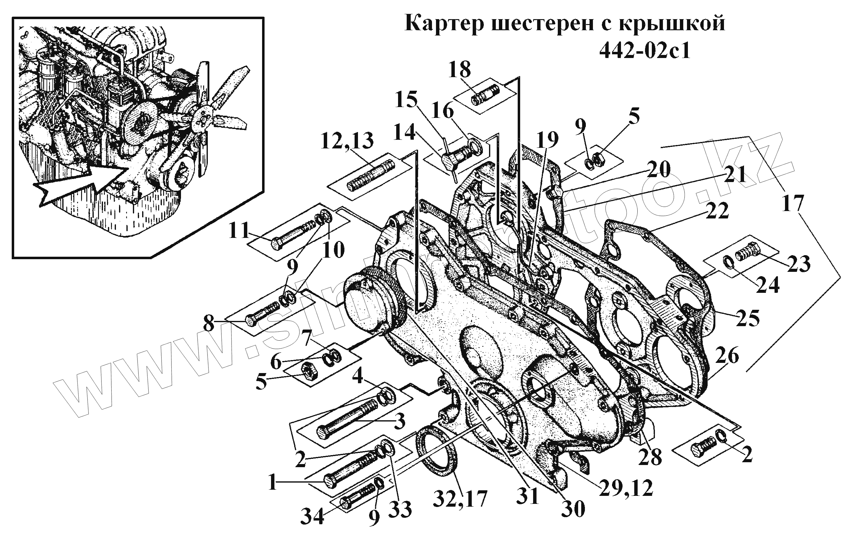 Картер шестерен с крышкой 442-02с1