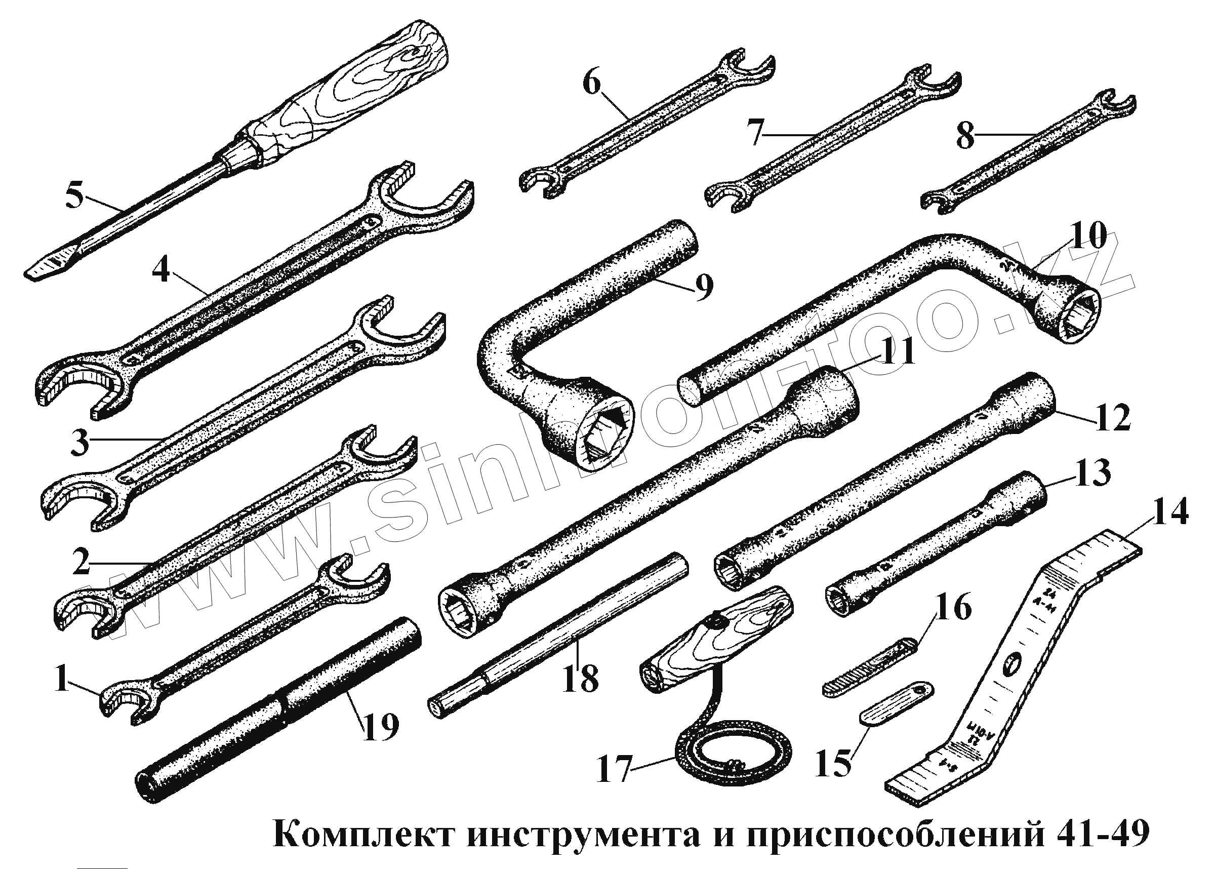 Каталог запасных частей к технике: ВгТЗ ВТ-100Д. Комплект инструмента и приспособлений 41-49