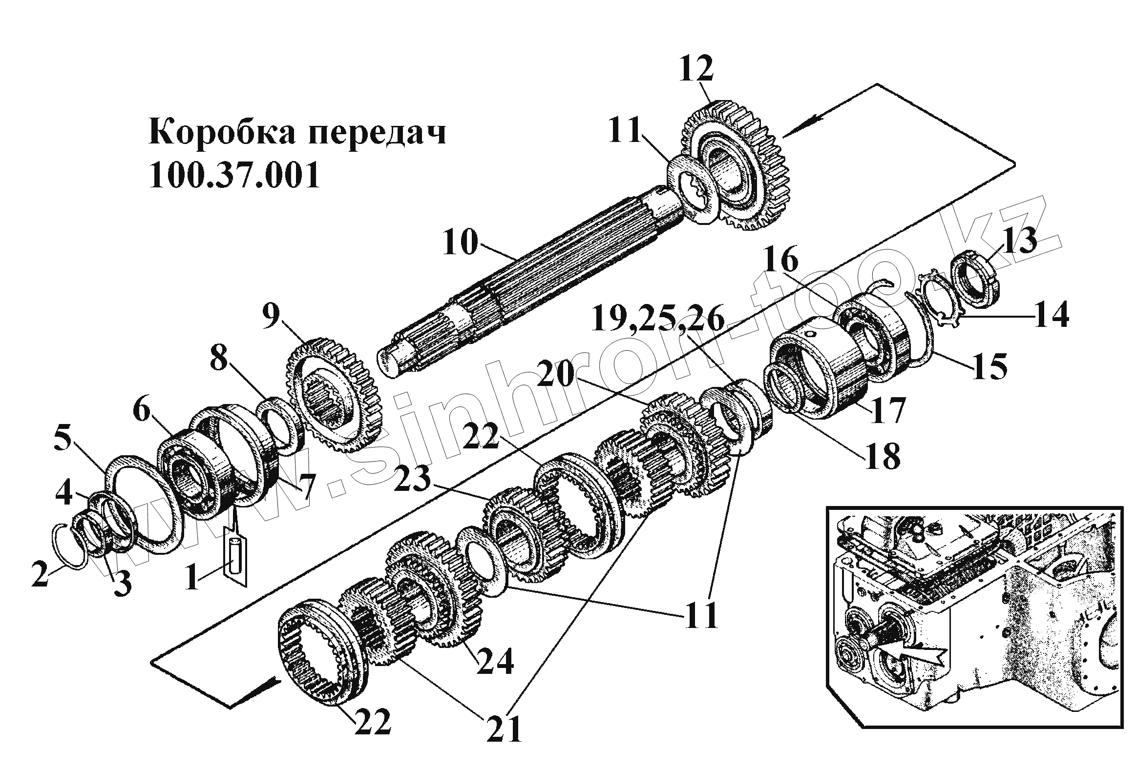 Каталог запасных частей к технике: ВгТЗ ВТ-100Д. Коробка передач 100.37.001 (2)