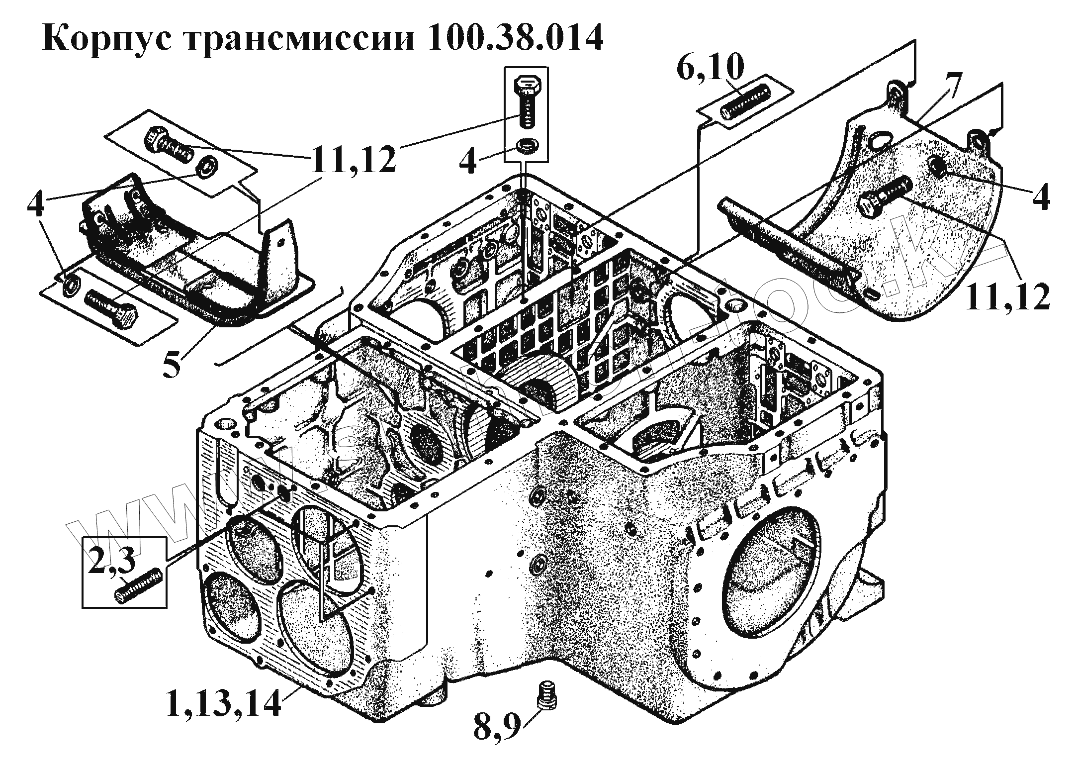 Каталог запасных частей к технике: ВгТЗ ВТ-100Д. Корпус трансмиссии 100.38.014