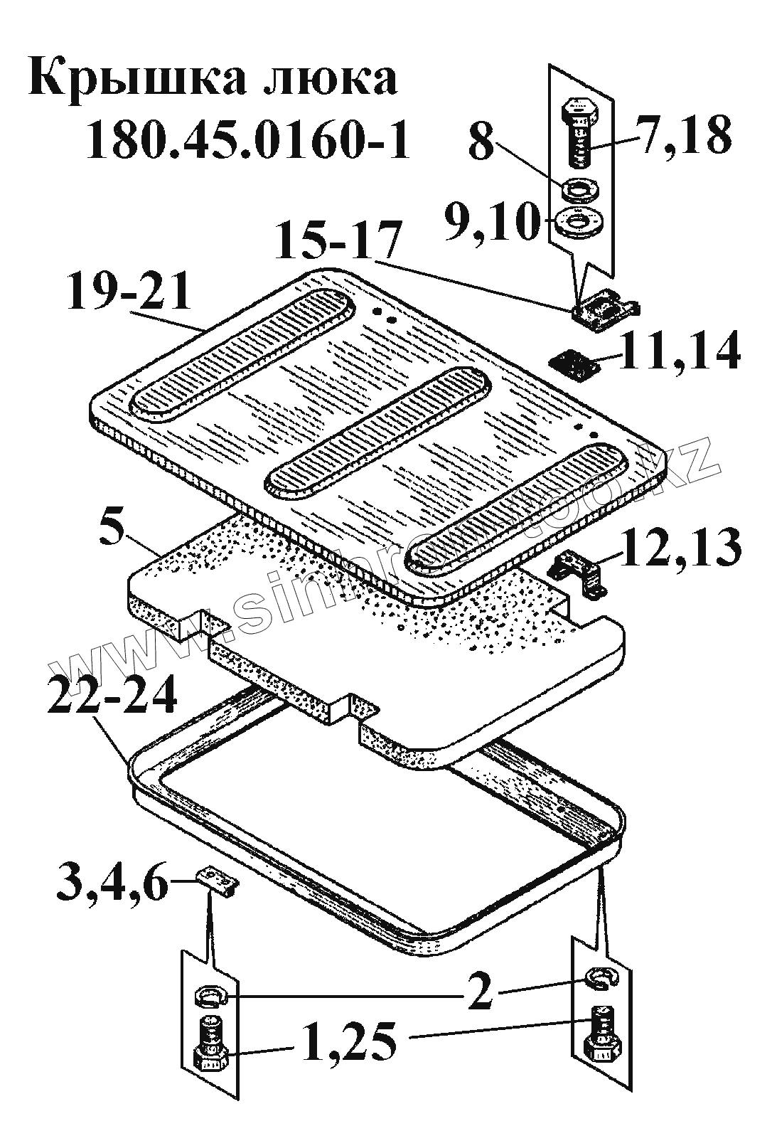 Каталог запасных частей к технике: ВгТЗ ВТ-100Д. Крышка люка 180.45.0160-1