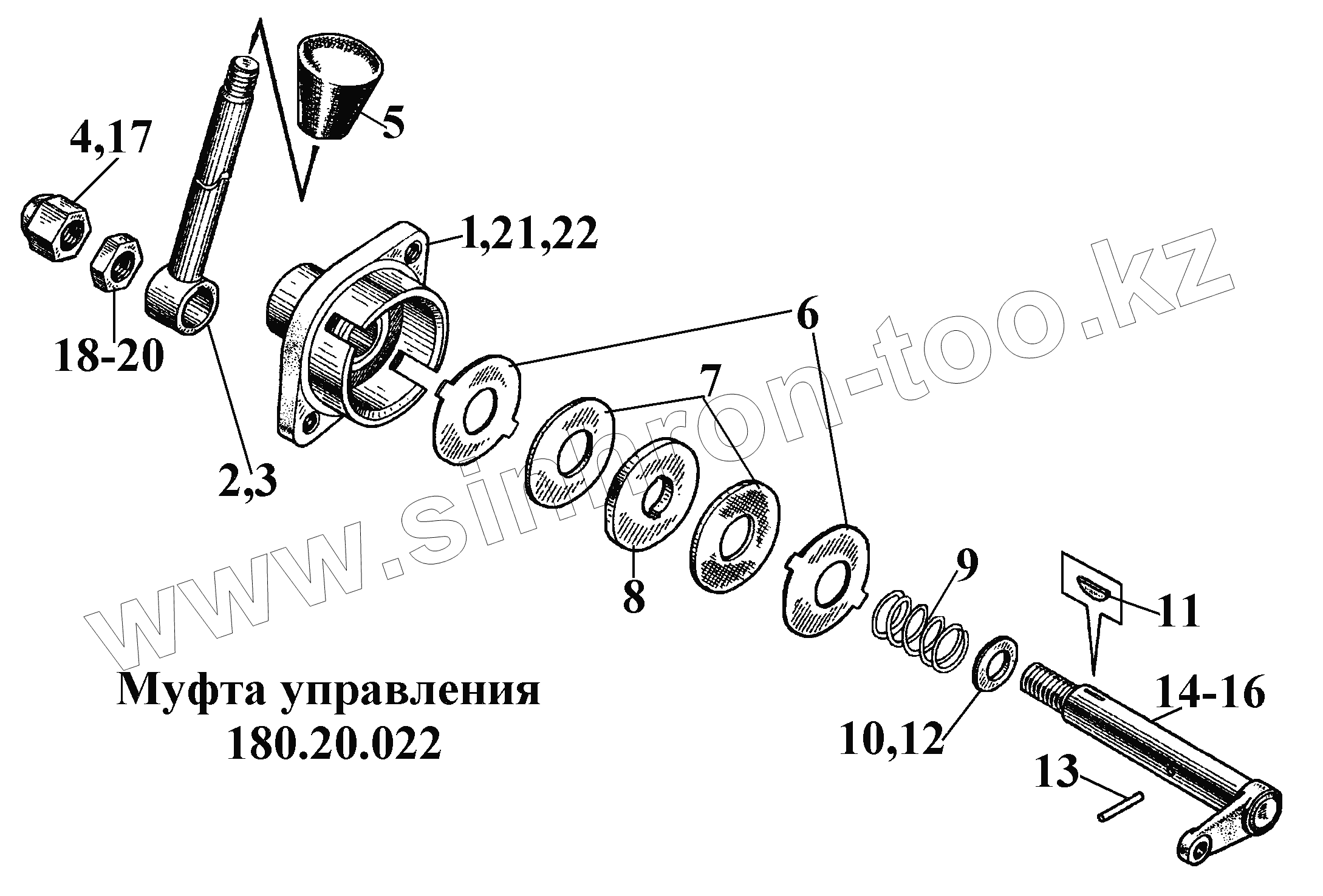 Каталог запасных частей к технике: ВгТЗ ВТ-100Д. Муфта управления 180.20.022