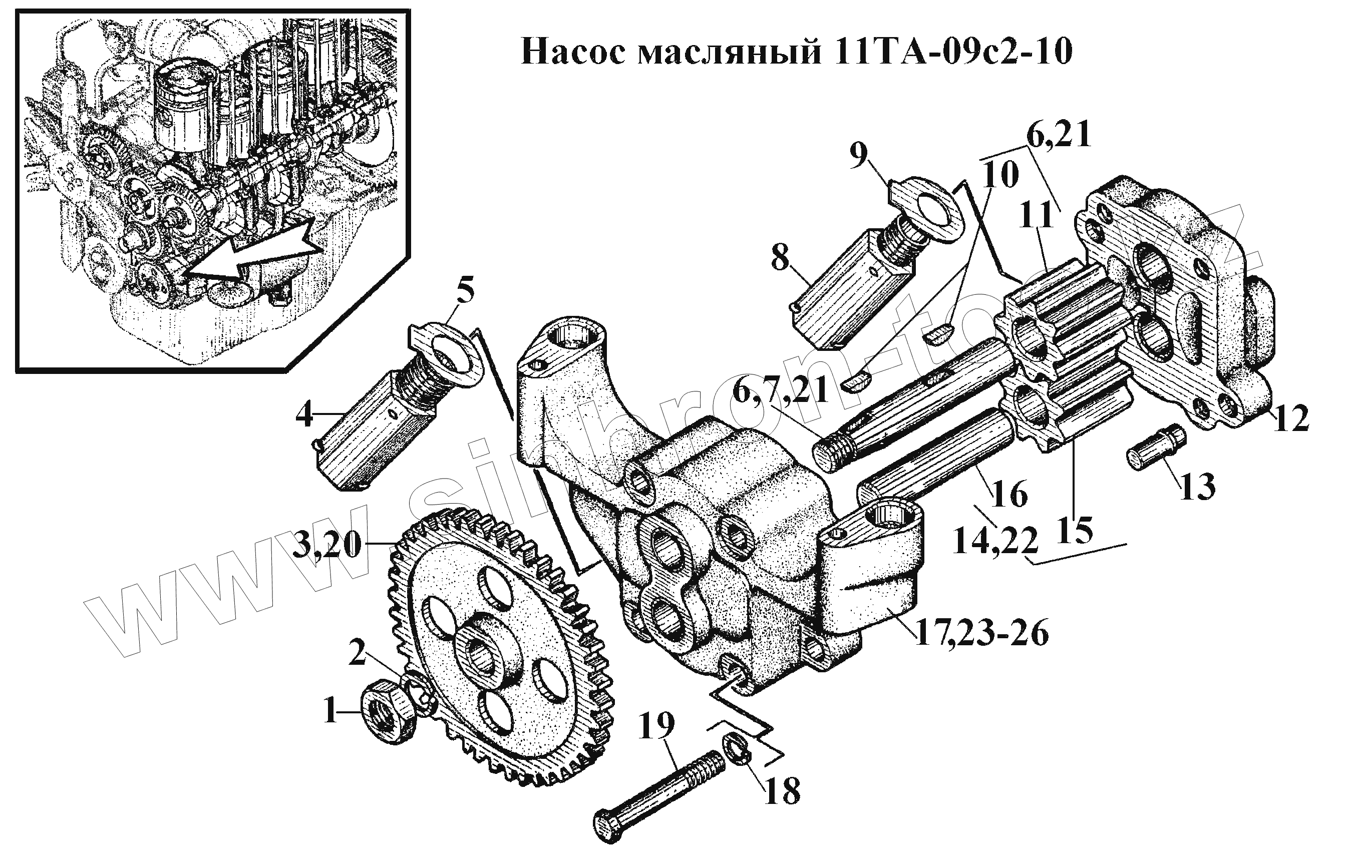 Каталог запасных частей к технике: ВгТЗ ВТ-100Д. Насос масляный 11ТА-09с2-10